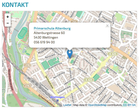 ⇧Standort Kindergarten (bei Klasse) auf der Website